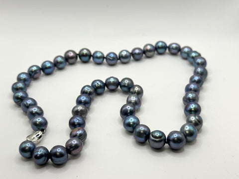 22” LARGE BLUE SILVER PEARL NECKLACE (9-11mm)